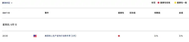 周四关注美国5月PPI数据和初请失业金人数(20:30),市场预计前者会从2.4%回升至2.6%,但若低于预期或继续令美元承压,从而利好贵金属和美股。
