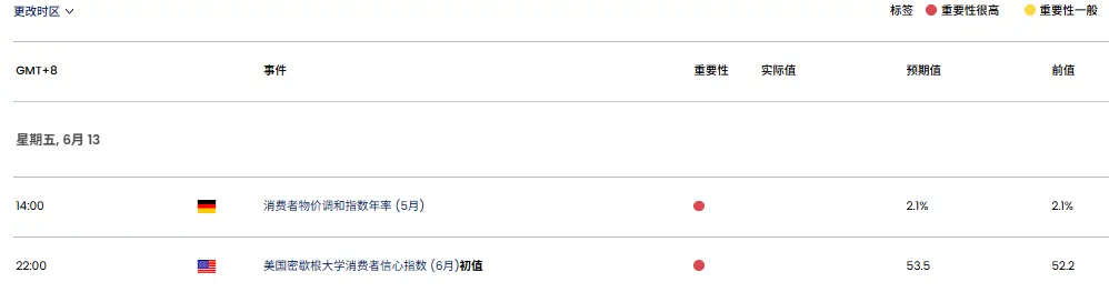 周五的美国6月密歇根大学消费者信心指数(20:30)是较为重要的数据,但市场关注的焦点应该都会集中在中东局势之上。